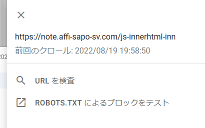 → パネルが表示される - 表示されたパネル内の、「URLを検査」をクリックする